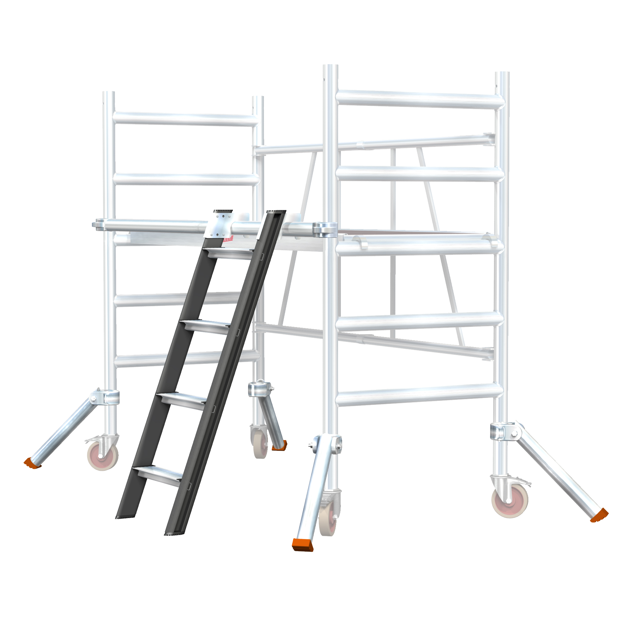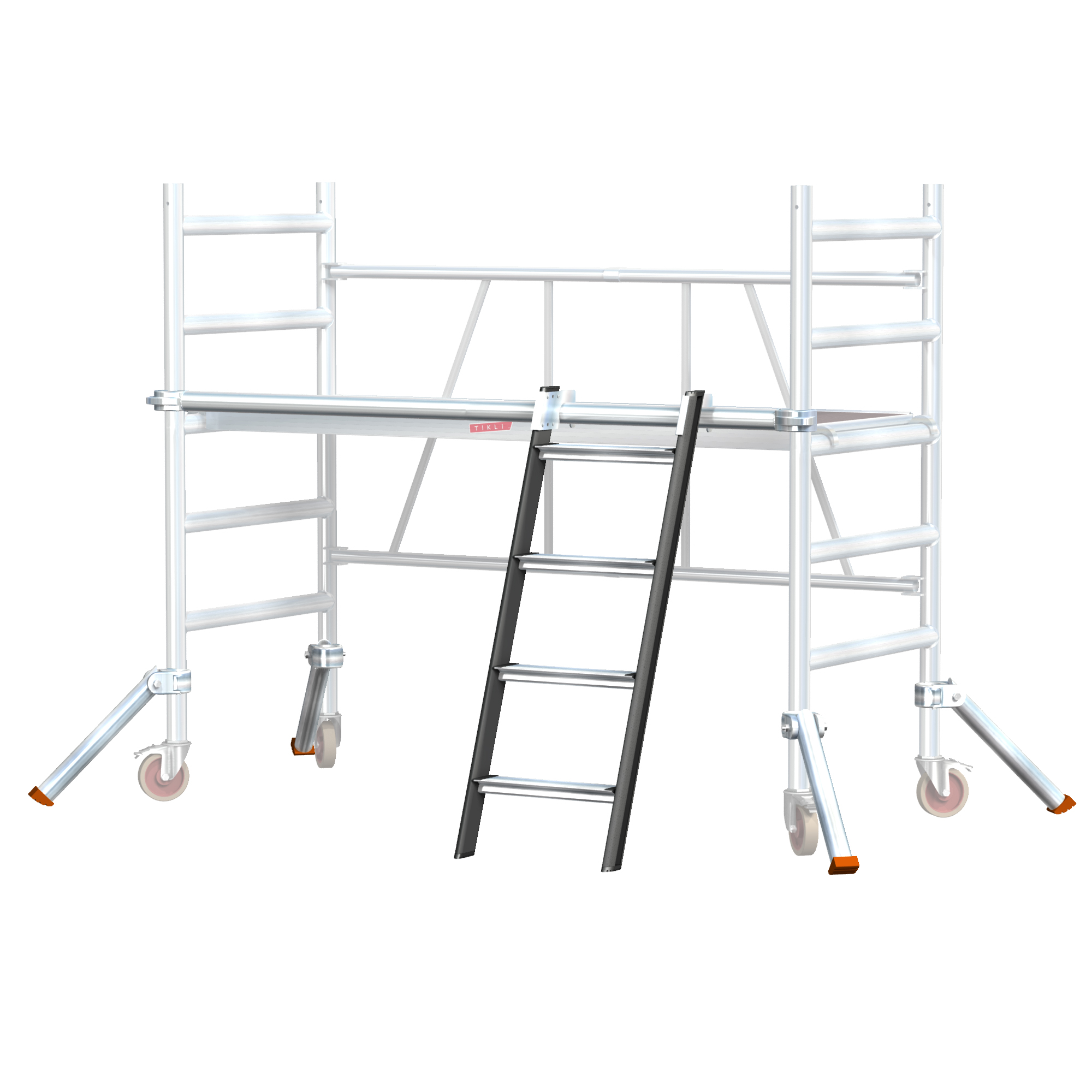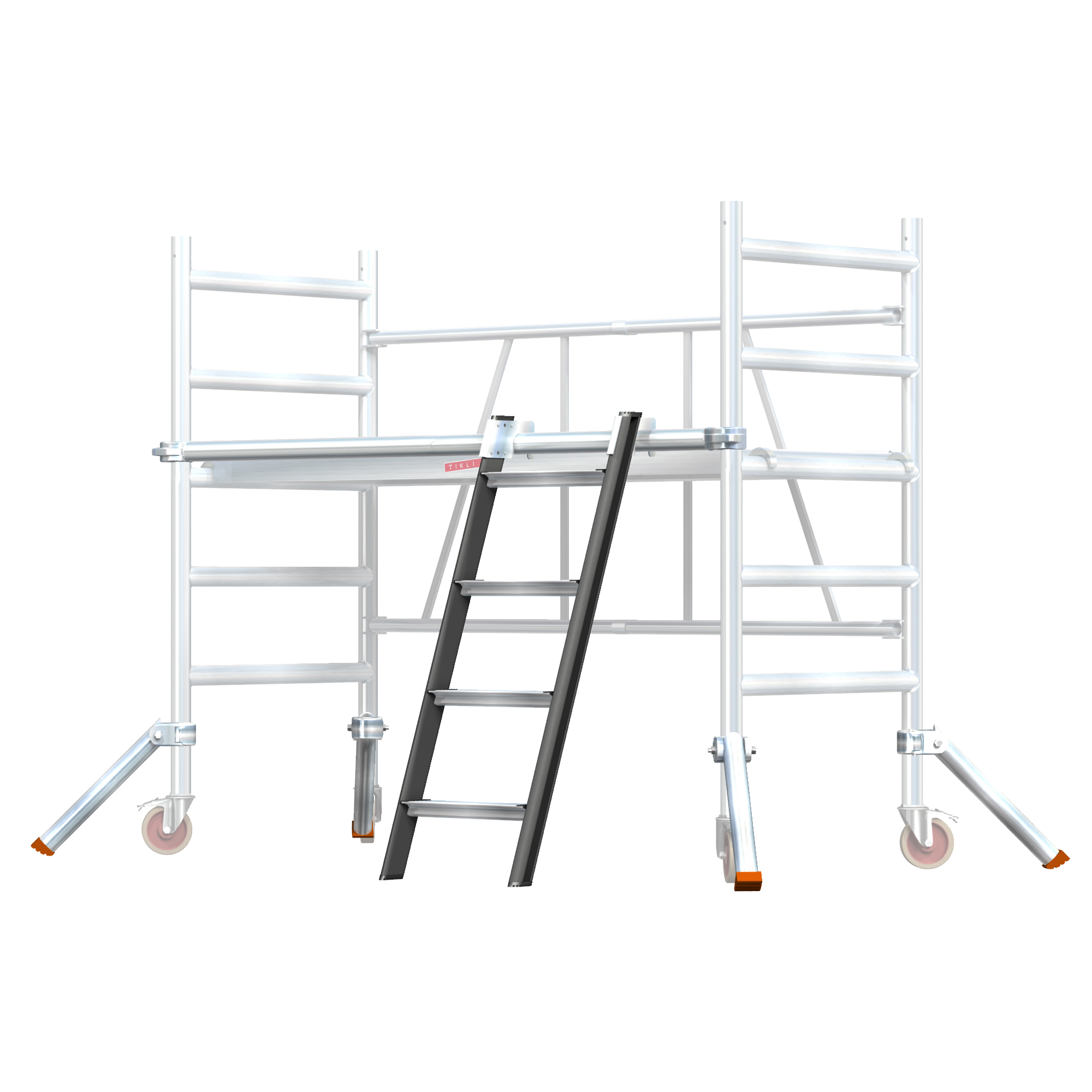 Tikli Jumbo NOUSU1J is a convenient and safe access solution to make it easier to climb onto the scaffold. Includes a horizontal rung, short 0.5 m outriggers and a 4-step ladder to 1 m height. The product package is suitable as an accessory for Tikli Jumbo 178 and Tikli Jumbo 155 scaffold frames.