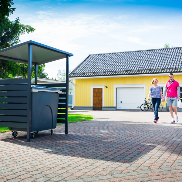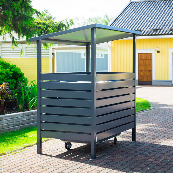 Tikli-roskakatos M soveltuu yhdelle 660l, kahdelle 240l/360l, 140l + 370l (monilokero) jäteastioille soveltuva ovellinen roskakatos. Alumiini on materiaalina kestävä, helppohoitoinen ja ekologinen. Tikli-katos on pitkäikäinen ratkaisu kodin tai taloyhtiön jätehuoltotarpeisiin, ja tyylikkäät katokset lisäävät piha-alueen viihtyisyyttä. Katoksen moderni, ajaton desing sopii tyyliltään monenlaisiin pihoihin. Elementtirakenteen ansiosta katoksen voi pystyttää paikan päällä. Väreinä valkoinen ja tumman harmaa, ja ottamalla yhteyttä myyntiimme voit tilata katoksen myös muissa väreissä!