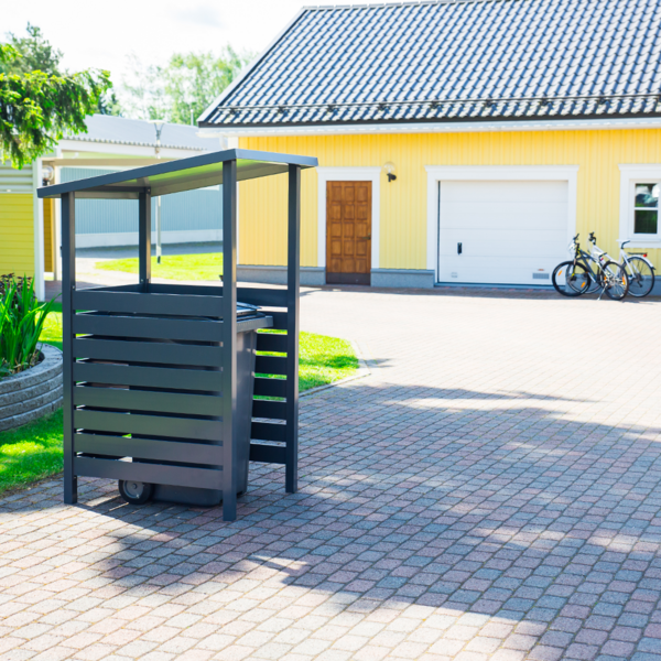 Tikli-roskakatos S on yhdelle 240l, 360l tai (370l monilokeroinen) jäteastialle soveltuva roskakatos ilman ovea. Tyylikäs katos antaa pihalle ilmettä, ja Tikli-katosten moderni ja aikaa kestävä design sopivat monen tyylisiin pihoihin. Pihakatosten materiaalina alumiini on ensiluokkainen: kestävä, helppohoitoinen ja ekologinen. Elementtirakenteen ansiosta katoksen voi pystyttää paikan päällä. Väreinä valkoinen ja tumman harmaa, ja ottamalla yhteyttä myyntiimme voit tilata katoksen myös muissa väreissä!