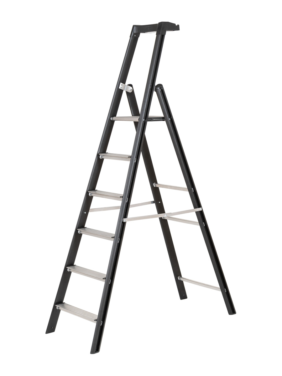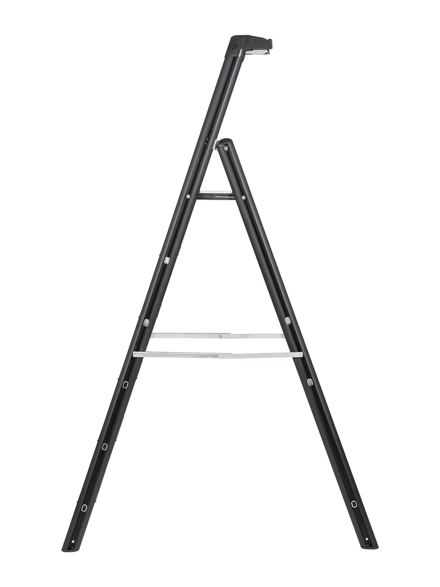 Kestävä, kotimainen ammattikäyttäjän A-tikas. Sivuprofiileiden ergonominen muotoilu yhdessä mustan struktuurimaalipinnan kanssa tekee tikkaan miellyttäväksi käyttää - ei sotke käsiä. Turvallisuutta lisäävät korkea polvituki, luja askelmakiinnitystekniikka, kestävä tarvikekotelo ja metallirajoittimet.
