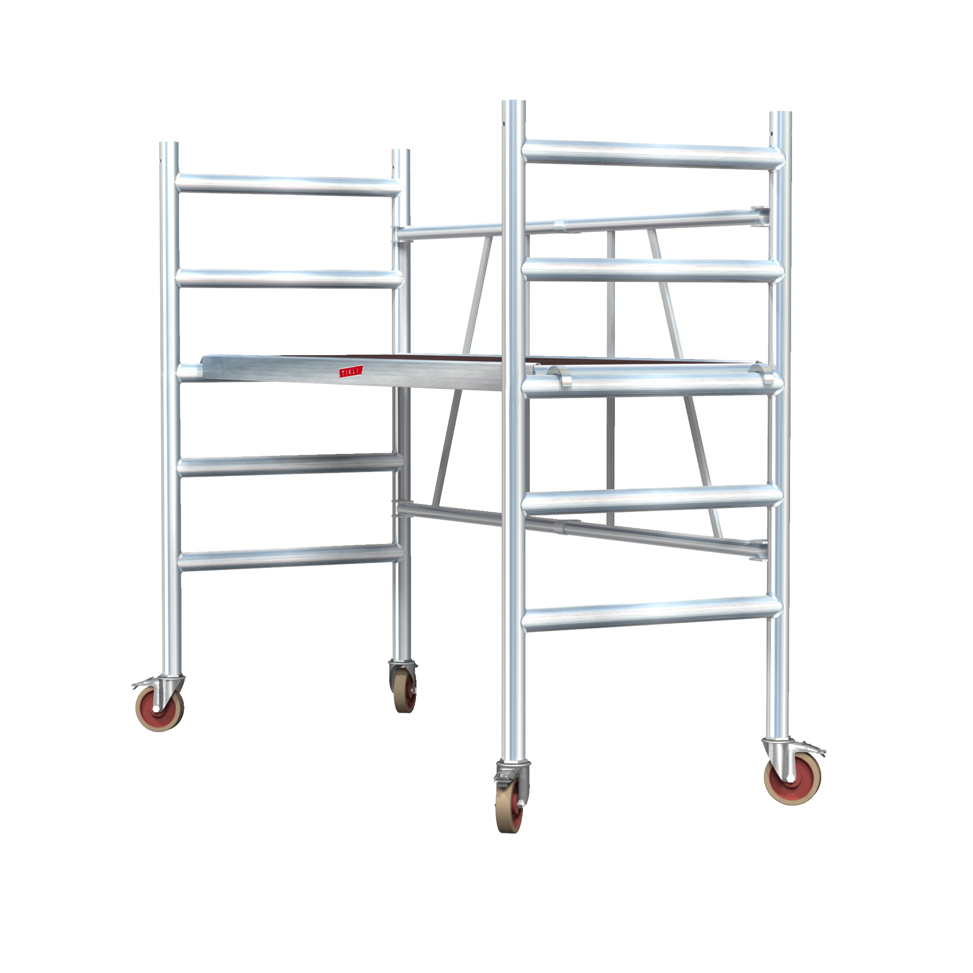 Tikli Jumbo 155 asennusteline on nopea käyttää ja helppo siirtää. Se muuntuu helposti eri käyttötarpeisiin korotusosien tai toisen telineen avulla ja sitä on mahdollista korottaa jopa 8 metrin tasokorkeuteen asti.