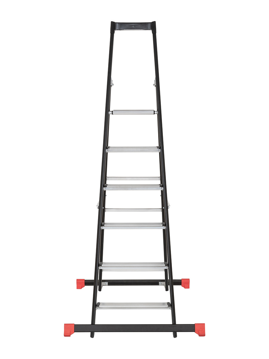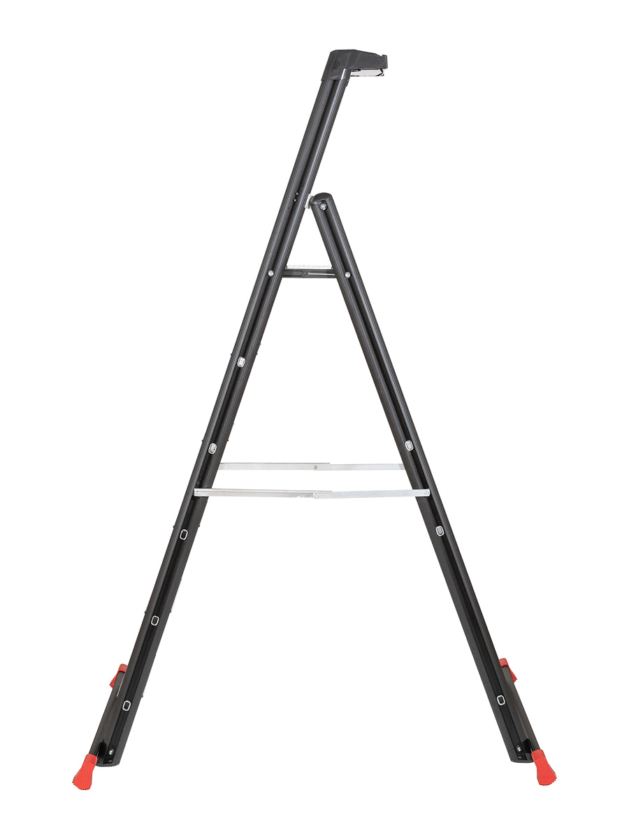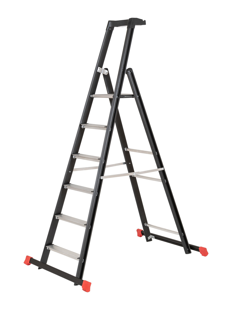 Kestävä, kotimainen ammattikäyttäjän A-tikas. Sivuprofiileiden ergonominen muotoilu yhdessä mustan struktuurimaalipinnan kanssa tekee tikkaan miellyttäväksi käyttää - ei sotke käsiä. Turvallisuutta lisäävät korkea polvituki, luja askelmakiinnitystekniikka, kestävä tarvikekotelo ja metallirajoittimet.