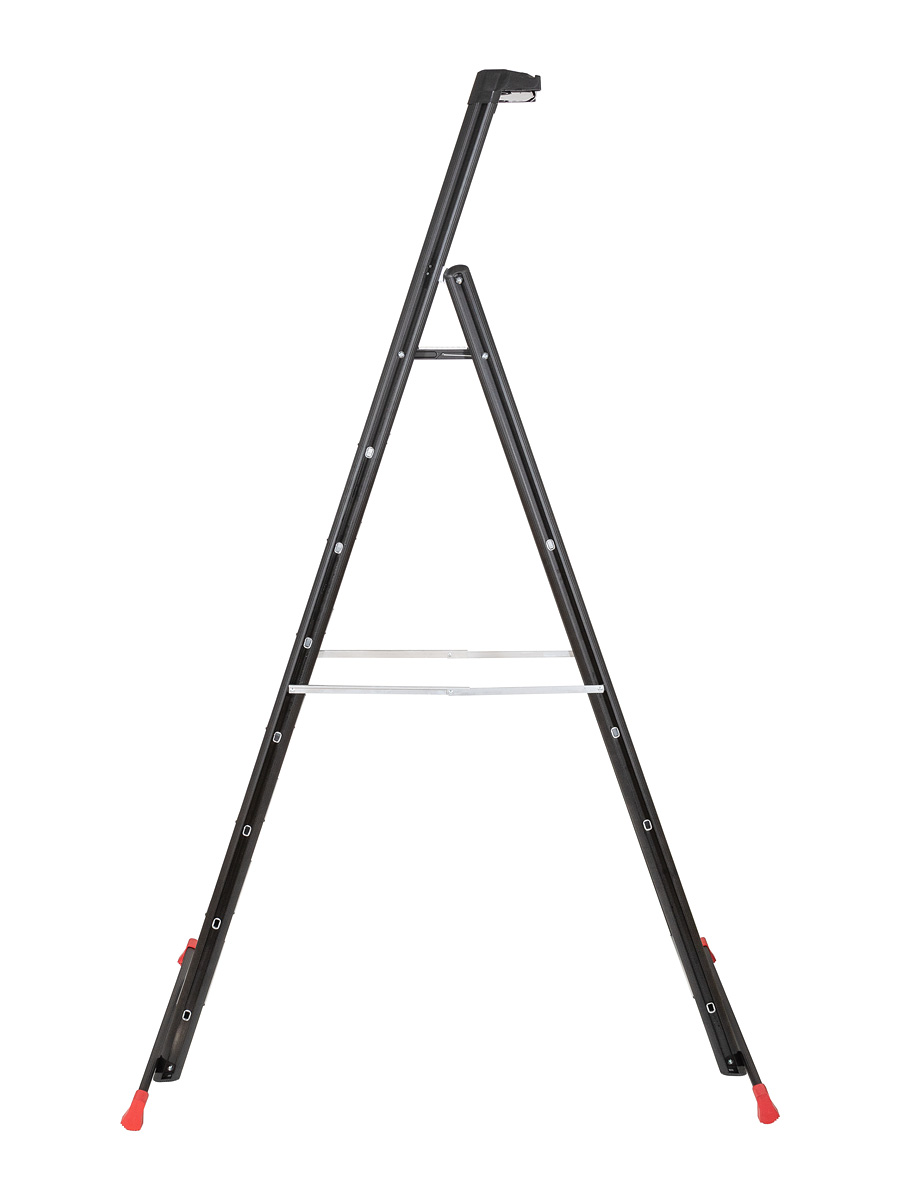 Kestävä, kotimainen ammattikäyttäjän A-tikas. Sivuprofiileiden ergonominen muotoilu yhdessä mustan struktuurimaalipinnan kanssa tekee tikkaan miellyttäväksi käyttää - ei sotke käsiä. Turvallisuutta lisäävät korkea polvituki, luja askelmakiinnitystekniikka, kestävä tarvikekotelo ja metallirajoittimet.