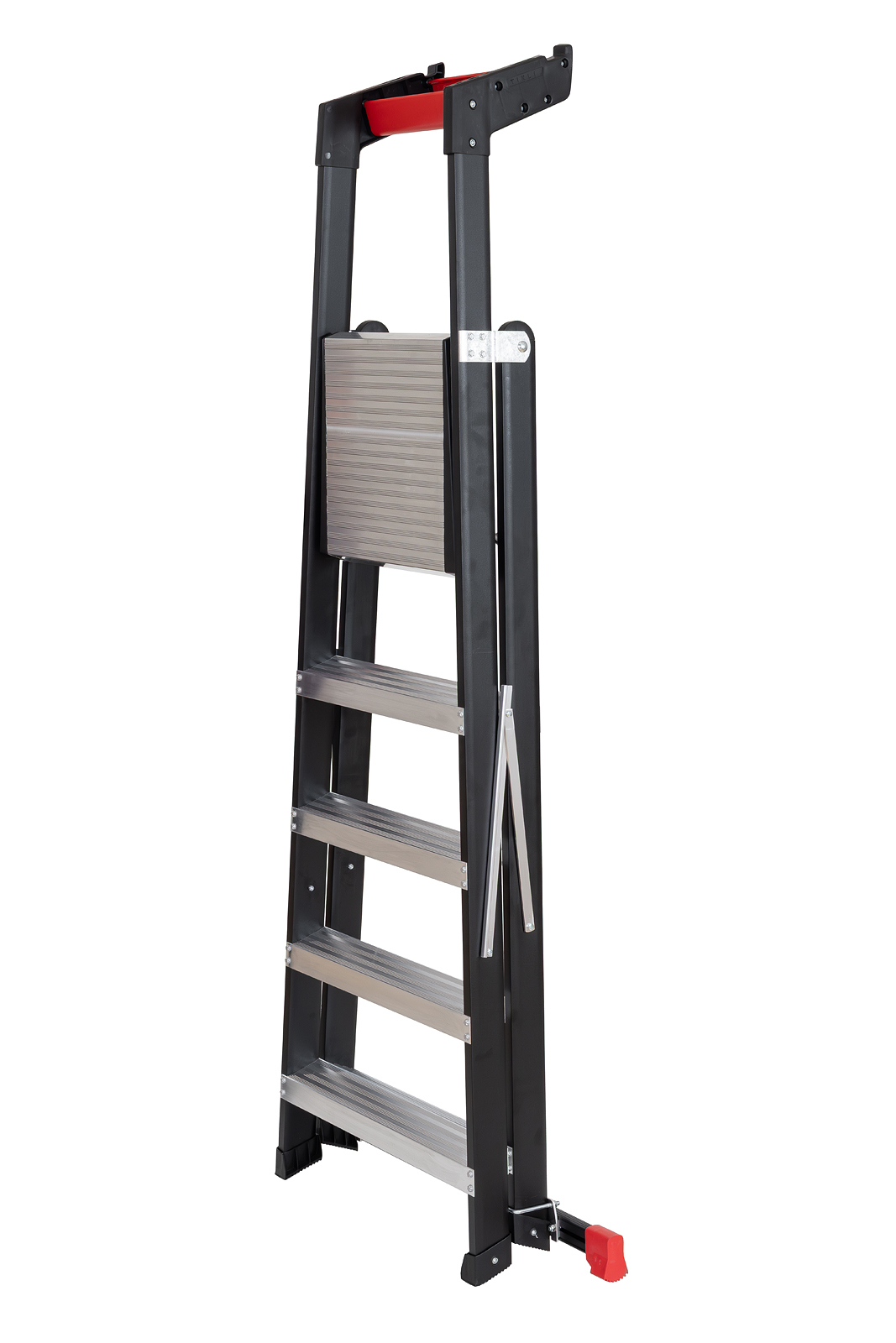 Vakaa ja tasokas ammattitasotikas vaativaan käyttöön. Uritettu, suuri alumiininen seisontataso (400 x 400) mm on suunniteltu soveltumaan myös kookkaammille turvakengille ja niiden käyttäjille tehden pitkäkestoisesta työskentelystä vakaampaa ja miellyttävämpää. Leveät uritetut askelmat on kiinnitetty kestävällä liitostekniikalla FDS- kitkahitsausruuveilla (Flow Drilling Screws). Uusi liitostekniikka takaa rakenteelle pitkän käyttöiän ja yhdessä sivuprofiileiden levenevän harituksen sekä vaakatukien kanssa tasotikas on erittäin vakaa käyttää. Korkea käsituki, tilava alumiininen työkalukotelo sekä ergonominen työskentelyasento lisäävät myös työturvallisuutta. Musta struktuurimaalipinta on siisti käsitellä, ei sotke käsiä. Liukuesteissä on huomioitu erinomainen kitka ja kulutuskestävyys, tassut ovat myös helposti vaihdettavissa.
